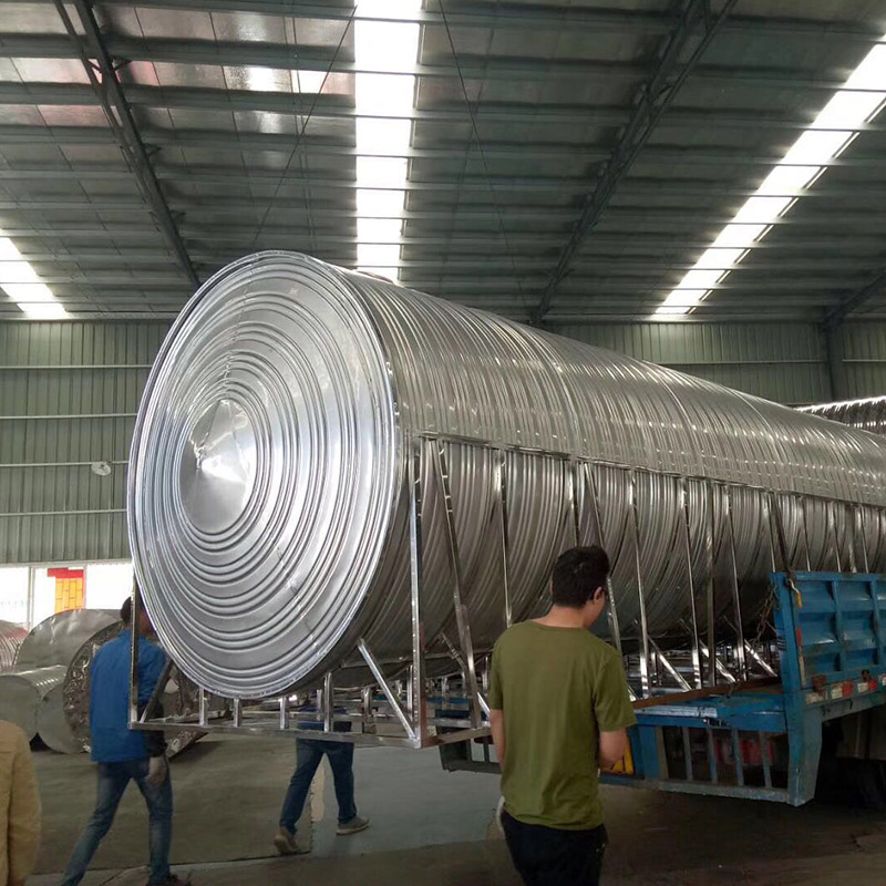 圓形不銹鋼水箱運(yùn)用進(jìn)口波紋滾筋機(jī)在板材表面形成均勻分布的波紋加強(qiáng)筋,大幅提高板材的強(qiáng)度與任性,從而使水箱更堅(jiān)固,焊接處利用直流高頻脈沖焊機(jī)焊接,接縫一次成型,抗拉
