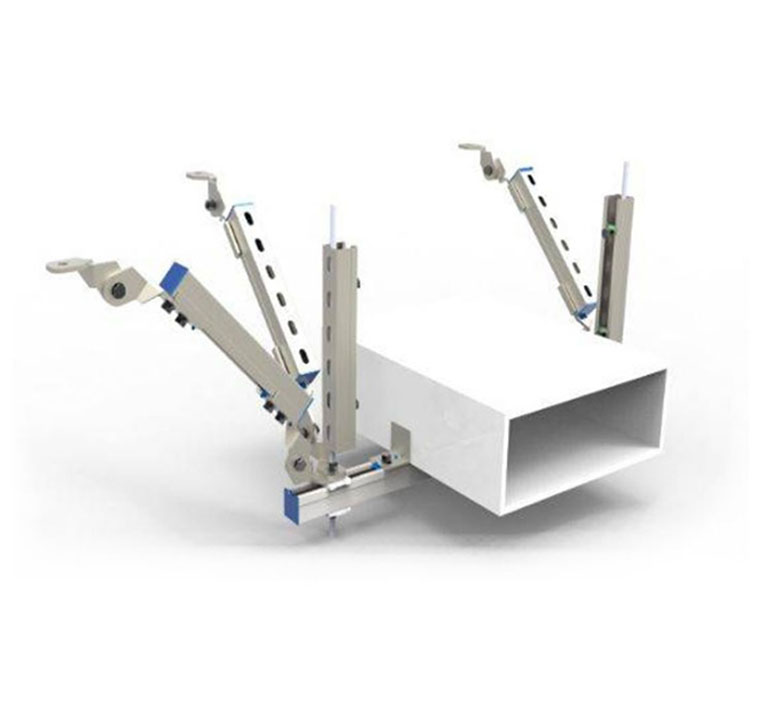 抗震支吊架是指將現(xiàn)代高層建筑內(nèi)部附屬機(jī)電設(shè)備如:給水排水系統(tǒng)、建筑電氣系統(tǒng)、消防管道系統(tǒng)、燃?xì)夤艿老到y(tǒng)、通風(fēng)與空調(diào)工程系統(tǒng)、電梯安裝系統(tǒng)、幕墻系統(tǒng)、地下管廊系統(tǒng)和